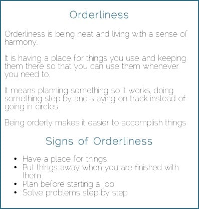 - OrderlinessOne of my resolutions this year is to be more organised and orderly. If anyone had peaked in my spare bedroom or the shelves in my wardrobe they’d agree that this is something I need to work on. In my head, I want to be one of those people whose cosmetics drawer has the lipsticks lined up in colour order, and the paper tray on my desk actually stacked into proper piles, not just a big pile of disorganised papers – but it just doesn’t come naturally to me unfortunately. I think half the problem is I’m impatient and always in a hurry which means I don’t take time to keep things organised. Anyway… one of my work mates had this lovely pack of “virtues” cards, one of which was orderliness. I’ve copied it out to stick on the fridge at home to remind me to be orderly. I’ve already started at home by going through some of my old things and donating them. Plenty more work to be done though on this one…