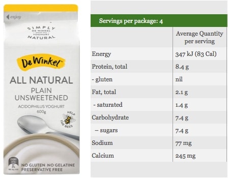 Sure, some yoghurt has sugar added. But remember dairy often has it’s own natural sugar present – lactose. One yoghurt I enjoy is De Winkles Plain Unsweetened Yoghurt. It’s ingredients are: