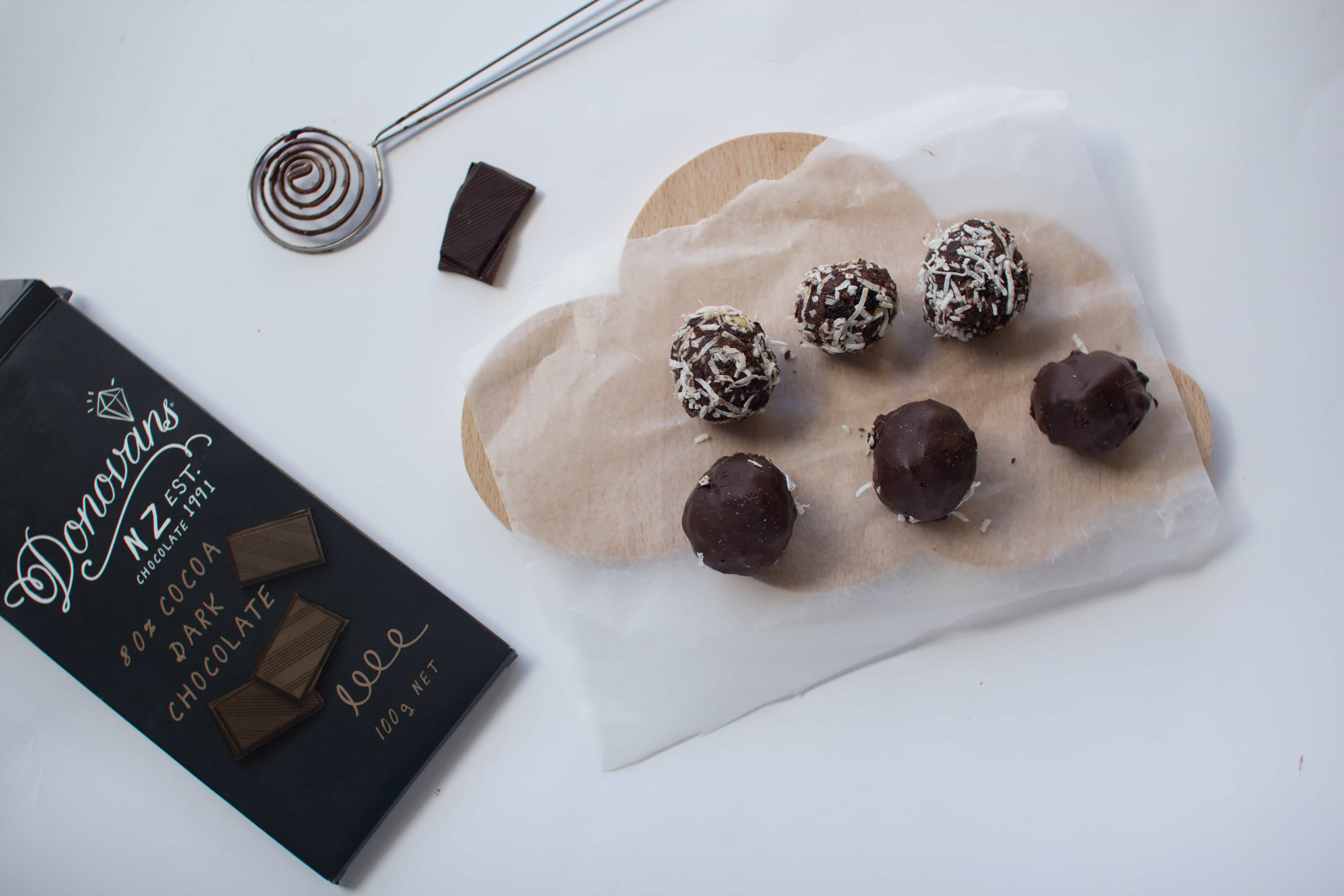 I dipped some of my apricot chocolate bliss balls in melted dark chocolate, rolled some in coconut and the rest in chia seeds. Choose the coating of your choice 🙂
