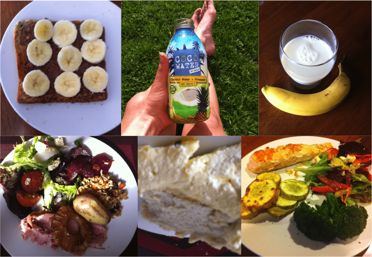 Breakfast: Had two of these – banana on wholegrain toast with chocolate peanut spread underneath. This was my pre run breakfast