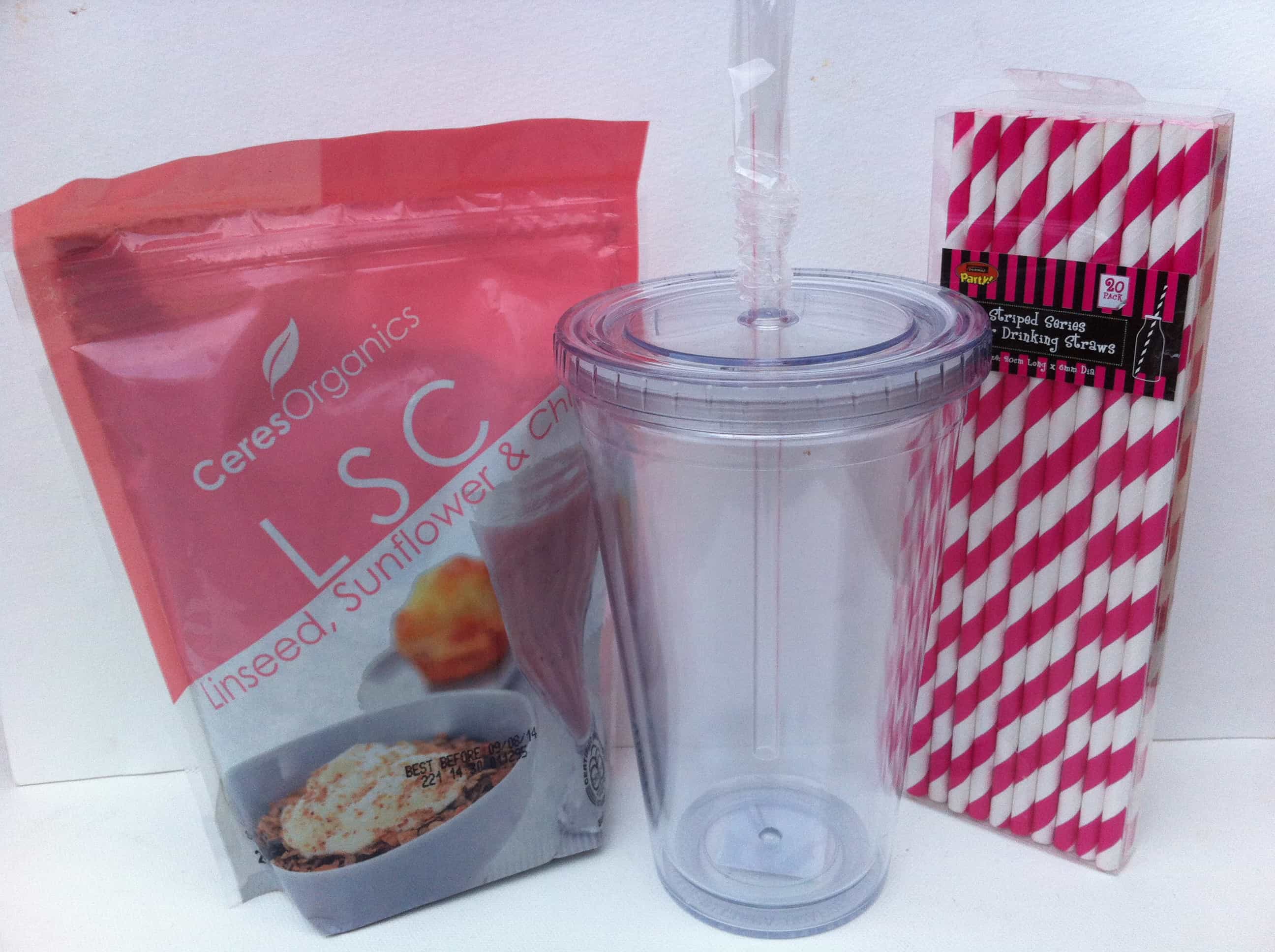 *Ceres Organics LSC (linseed, sunflower and chia) – a fabulous source of omega 3 fats and dietary fibre*A packet of pink and white smoothie straws