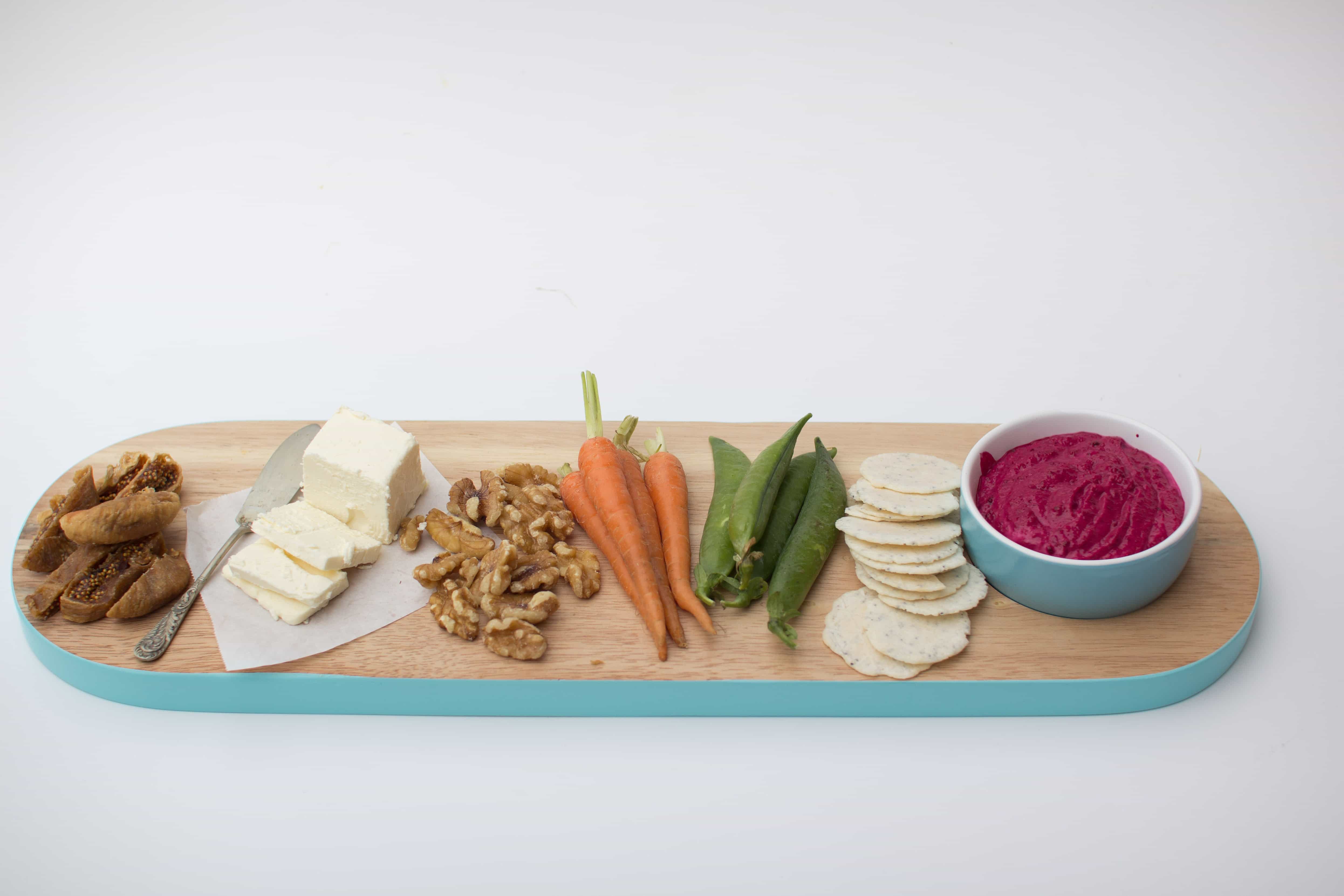 Home made dips are actually really easy to make, and often far healthier than store bought alternatives. Here’s the beetroot dip pictured.