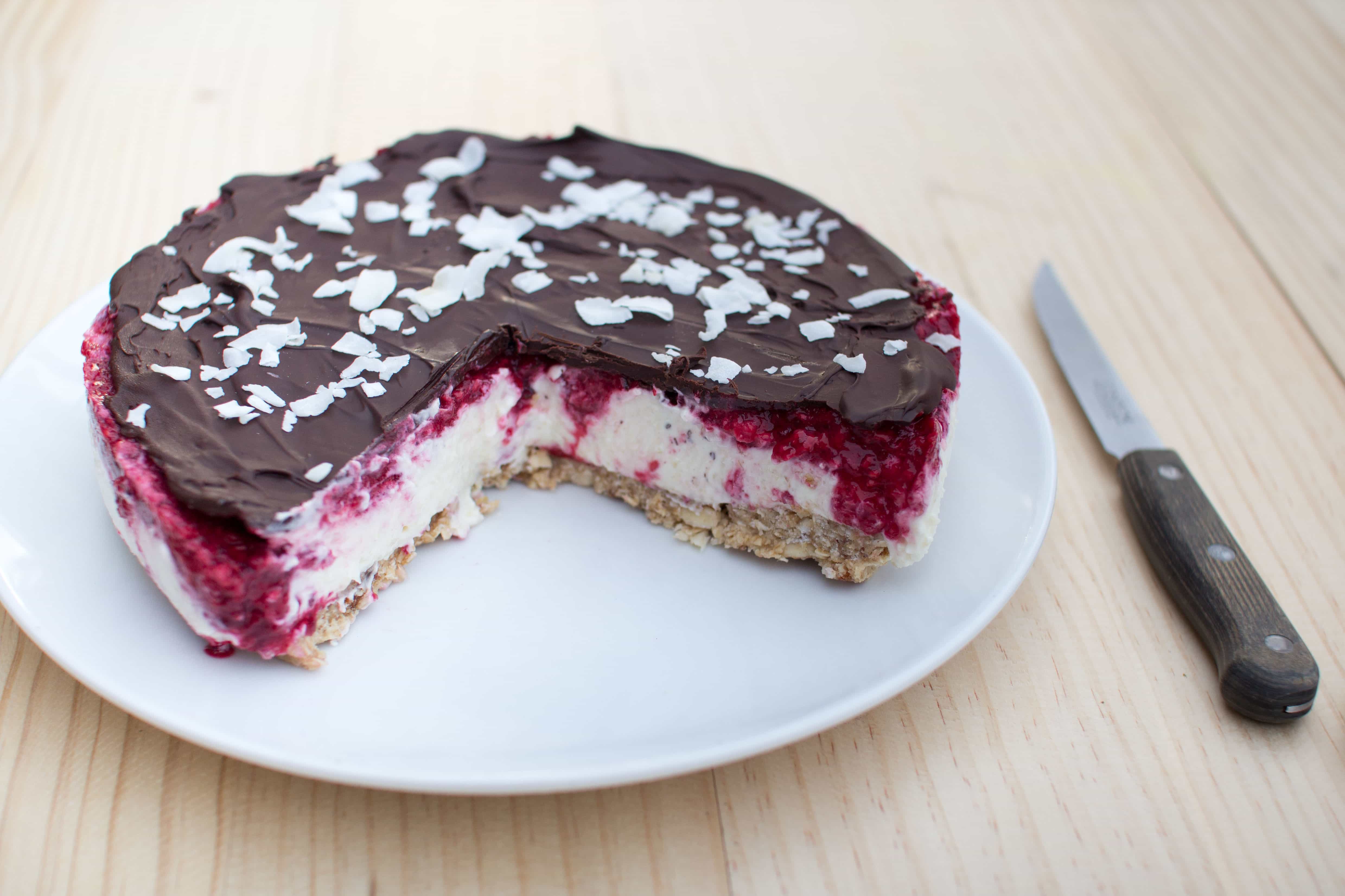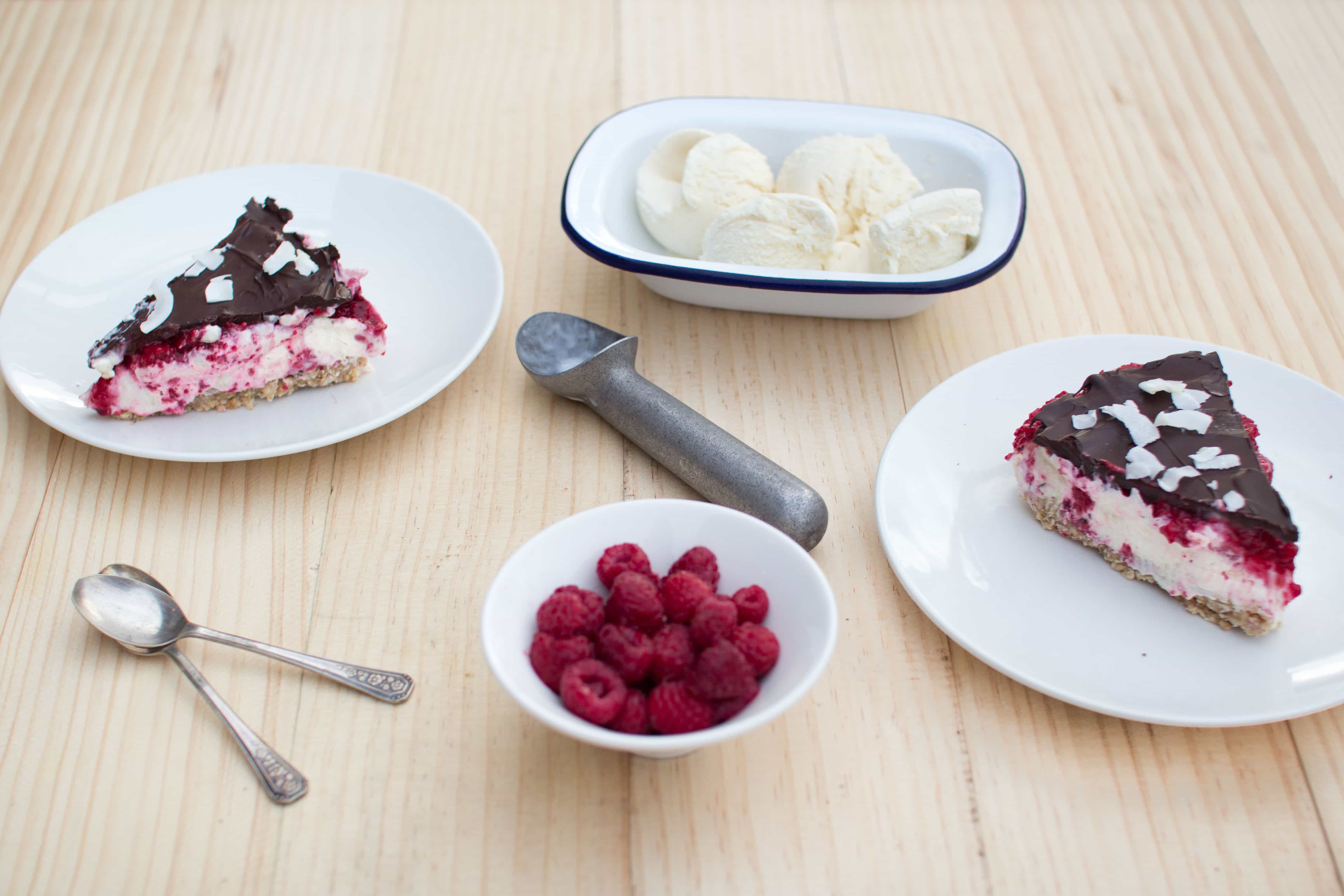 Place in freezer for 3-4 hours until set. Store in the fridge. Serve with raspberries and vanilla bean ice cream for an extra treat.