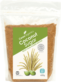Coconut sugar is taken from the crystallized nectar of the coconut palm tree’s flowers. It has a beautiful flavour and is low GI. It contains a range of vitamins and minerals in small amounts. It contains slightly less fructose than table sugar aka sucrose.
