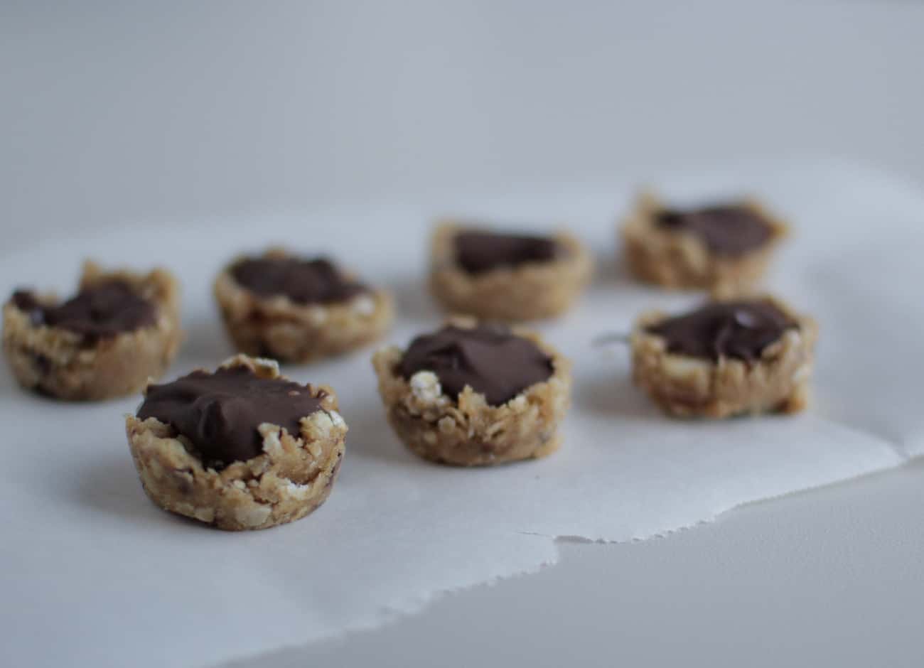 Place all the ingredients, except for the chocolate, into a food processor or blender and pulse until mixed together. Grease some mini muffin tins and press teaspoons full of the mixture into the muffin tin, making a small indent for the chocolate. Melt the chocolate and spoon a little chocolate over the base. Freeze until set. Store these yummy treats in the refrigerator. I enjoyed a couple with a cup of tea when the nerves from the earthquake had settled.