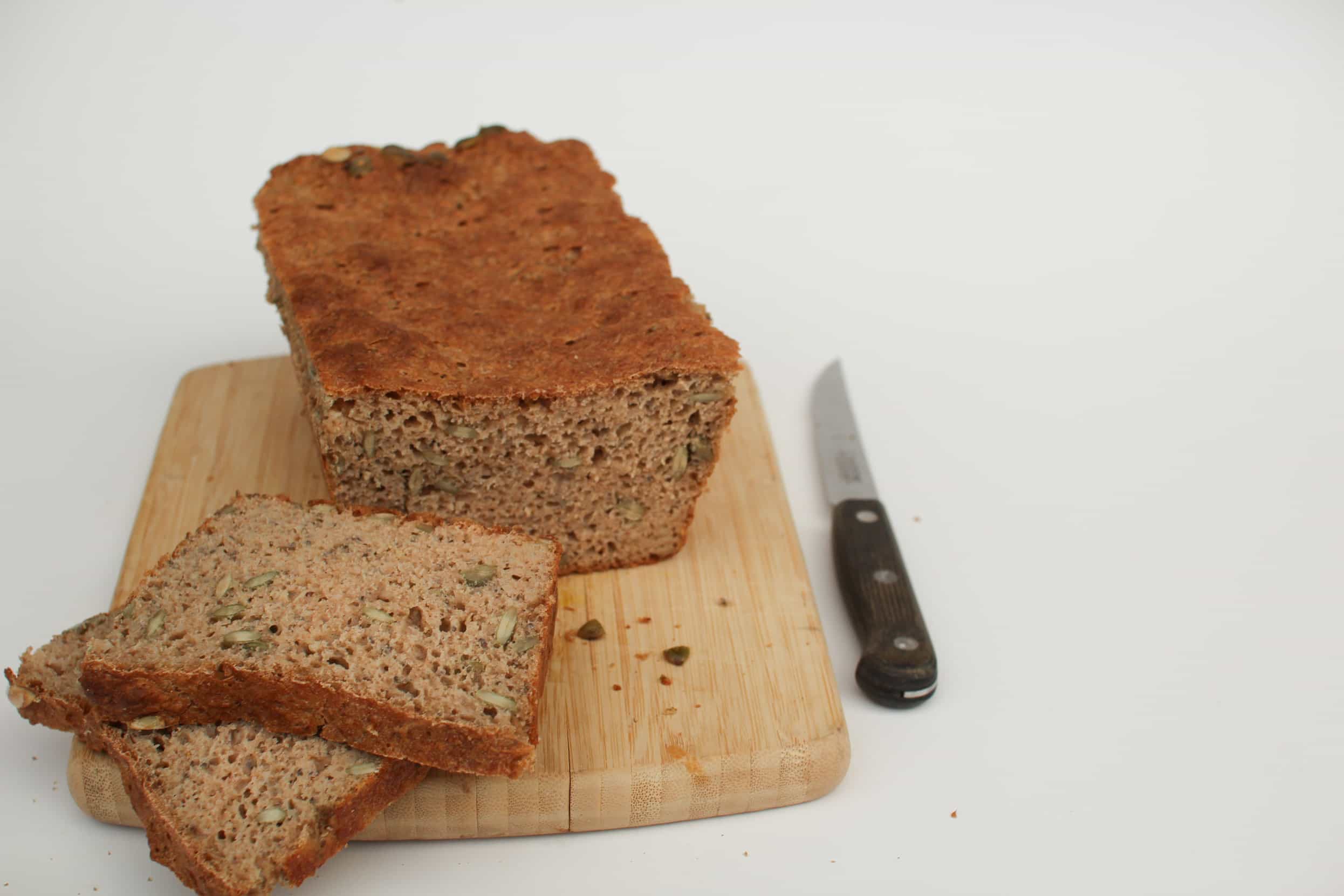 The bread uses mostly wholemeal flour, with a little white. I used less white than in the original. You could use all wholemeal, and I’ll try this in the next recipe 🙂 This bread contains plenty of fibre from the wholemeal flour and the addition of seeds, and is less refined than many on the market.