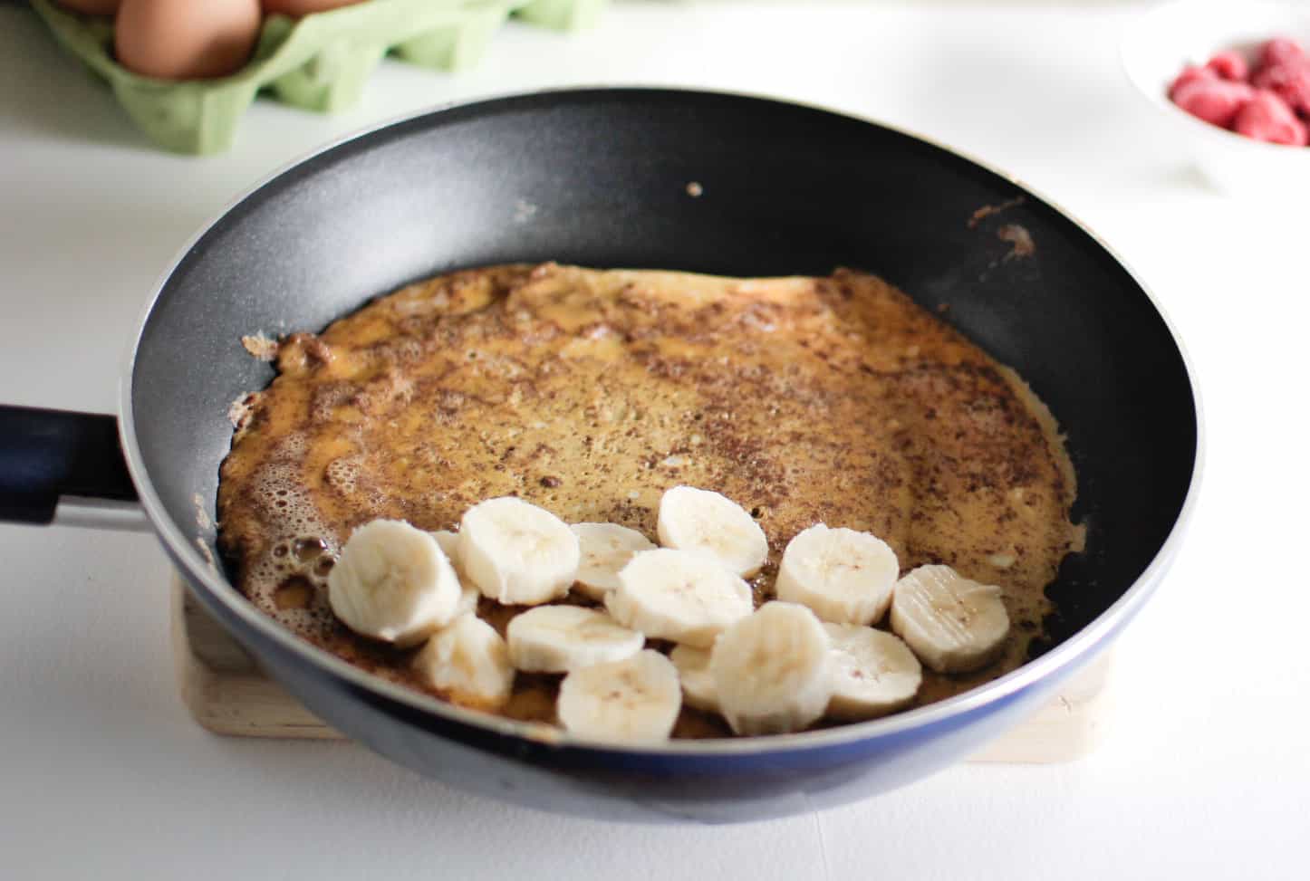 Place back on the heat for another minute or two until cooked through. Serve with some berries and a drizzle of honey or maple syrup.