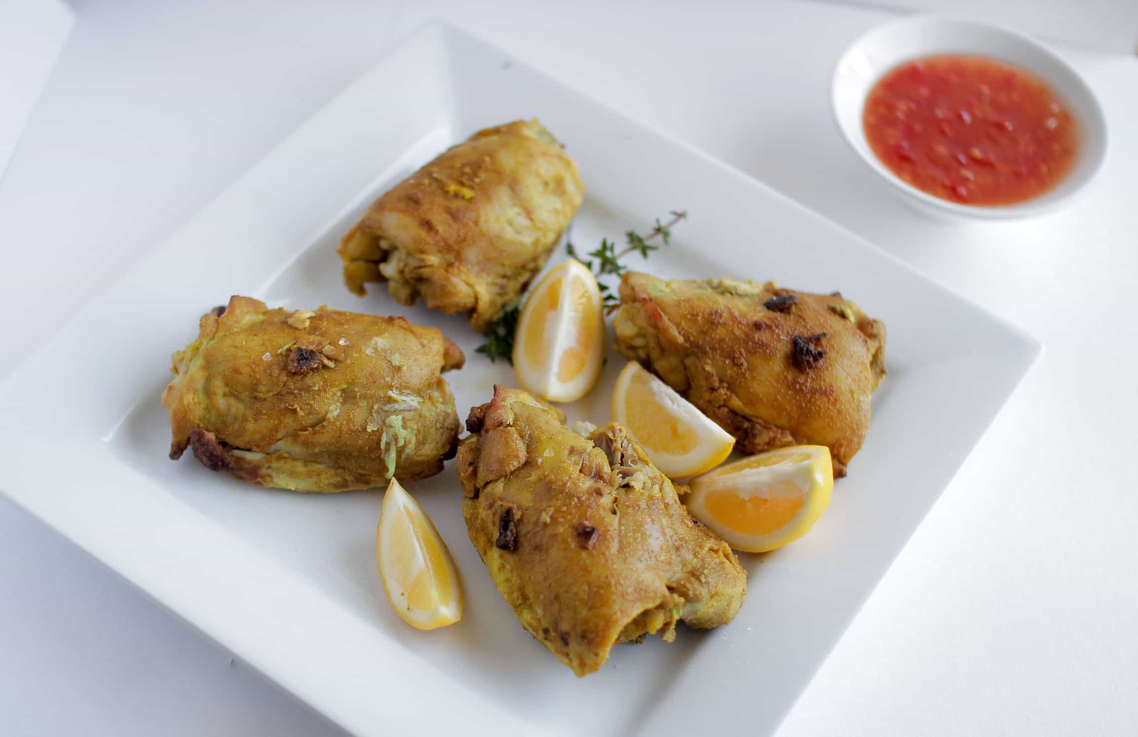 Serve with lemon wedges, and sweet chilli sauce.