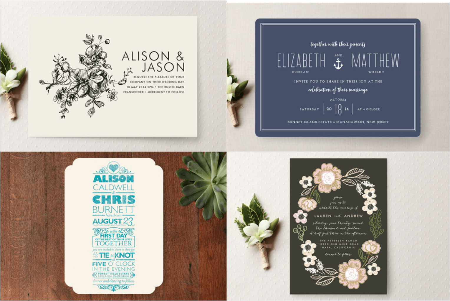 Minted is an online stationery store powered by a global community of designers, so you get the best designers all in one place and can order simply at a click of the button. It’s a great way to support independent designers, who get commission on every order. They have new designs added regularly and their 2014 save the date cards and invites are just gorgeous. I chose the Woodland intials wedding invites (above) but instead of the wood background, I got a charcoal grey which looked amazing. I’ve had lots of comments about how nice the invites were. They were also a really reasonable price.